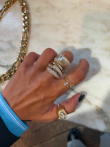 Bague Leila en plaqué Or 3 microns, la pierre centrale en zirconium pour intensifier son charme.