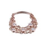 Bague en Argent 925 ou Plaqué Or rose à base de trois chaines. Elle capture une élégance intemporelle pour vous accompagner au quotidien.