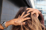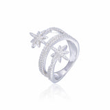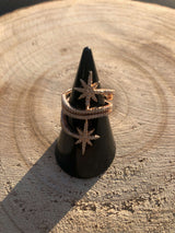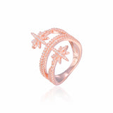 Bague en Argent 925 ou plaqué Or rose. Bague à 3 rangs avec 2 flocons aux extrémités. Bijou scintillant de zirconiums pour une touche d'élégance.
