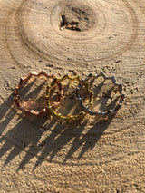 Bague en Argent 925, plaqué Or rose et jaune. La bague a une forme de zig zag ornée de zirconiums. Se vend en trio.