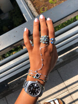Bijou de main en Argent 925, plaqué or rose ou jaune. Une chaine ornée de pierres rondes en zirconium. Un bijou simple et élégant.