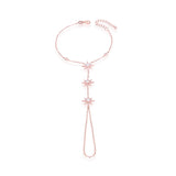 Bijou de main en Argent 925 ou plaqué Or rose. Fait d'une chaine avec trois flocons centrales ornés zirconium. Un bijou simple et élégant.