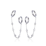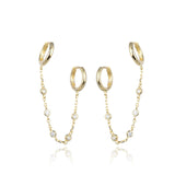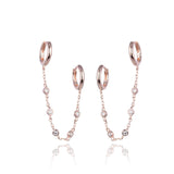 Les boucles d'oreilles Kiara en Argent 925, plaqué Or jaune ou rose. Des créoles reliées par une chaines habillée de zircons.