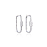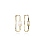 Boucles d'oreilles en Argent 925 ou plaqué Or jaune. Des créoles de forme rectangulaire avec un mousquetons accrochés. Elles sont parfaites pour être portées au quotidien.
