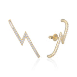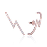 Les boucles d'oreilles Sandra en Argent 925, plaqué Or jaune ou rose. Des puces d'oreilles sous forme d'éclairs ornées de zircons. Un modèle unique pour sublimer vos tenues au quotidien.
