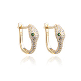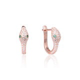 Les boucles d'oreilles Louise en Argent 925, plaqué Or jaune ou rose. Des créoles en forme de serpent ornées de zircons et des yeux scintillants verts. Ces boucles d'oreilles et leur élégance audacieuse sublimeront vos tenues.