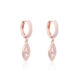 Boucles d'oreilles Miko en Argent 925 ou plaqué Or rose. Des mini créoles soutenant un pendentif d'oeil, le tout serti en éclats de zirconium.