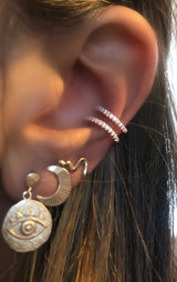 Clips en Argent 925, plaqué Or jaune ou rose. Une créole ornée de pierres blanches en zirconium. Idéal pour une composition avec une touche minimaliste et sophistiquée sans besoin de perçage.