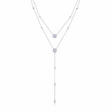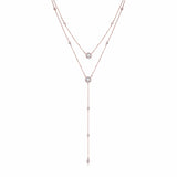 Collier Iris Argent 925 ou plaqué Or rose. Un sautoir en double rangs habillées par des pierres rondes en zirconiums. Un bijou intemporel et élégant.