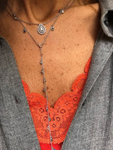 Collier en Argent 925, une fine chaine soutient un pendentif poire à plusieurs rang avec une pierre centrale, pendentif orné de zirconiums. Une touche minimaliste et raffinée à votre look.