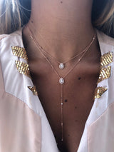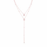 Collier Stella en Argent 925 ou plaqué Or rose. Collier sautoir à double rangs habillé par deux pendentifs en forme de poire avec une pierre en zirconium. Un design sophistiqué et minimaliste.