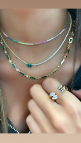 Collier Rivière en Argent 925 ou plaqué Or, chaine habillé par des zirconiums de différentes couleurs. Un bijou sophistiqué pour égayer vos tenues.