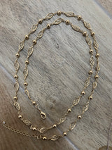 Collier sautoir en plaqué Or vernis à triple rangs. Une chaine habillée de pendentifs en motifs filigrane sculptés. Un bijou original et sophistiqué avec un style intemporel pour votre quotidien.